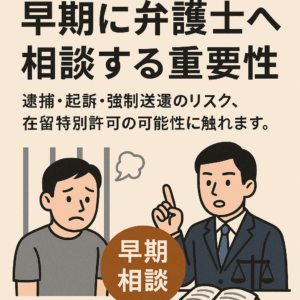 一方、対応が遅れると手遅れになるリスクがあります。例えば有罪判決が確定してから慌てて在留特別許可の準備を始めても、充分な主張を組み立てる時間がないかもしれません。場合によっては拘束中に強制送還の日程が進んでしまい、準備が整わないまま本国送還となりかねません。早期に信頼できる弁護士に相談し、刑事弁護と入管対応を一貫して依頼しておけば、そのような最悪の事態を避けられる可能性が高まります。